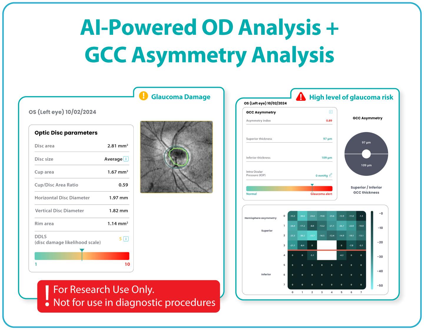 Objective, image-derived measurements of GCC and OD features for use in research and investigational workflows.